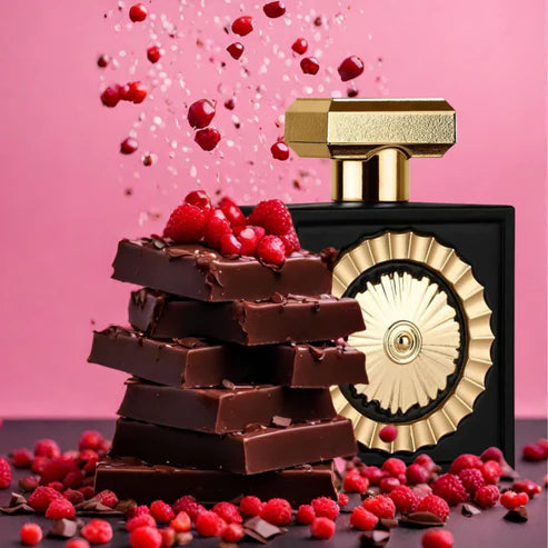 - Notas de corazón: La calidez de la vainilla y el cacao se entrelazan con la delicadeza de la rosa.