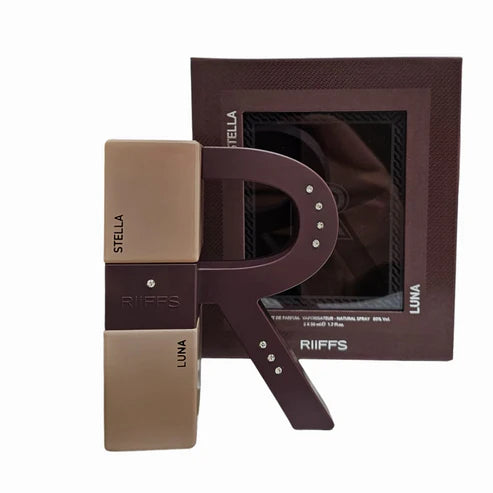 RIIFFS Stella & Luna es un dúo de fragancias unisex que revela dos facetas complementarias: una cálida y gourmand, otra cremosa y luminosa.